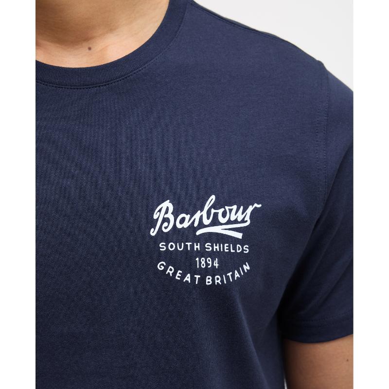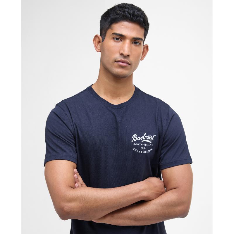 This Barbour Script Graphic T-Shirt is made from 100% cotton and features a crew neck and short sleeves for a comfortable fit. The small logo on the left chest adds a subtle touch of Barbour branding. With a tailored fit, this t-shirt is both stylish and comfortable, making it a perfect addition to any wardrobe.