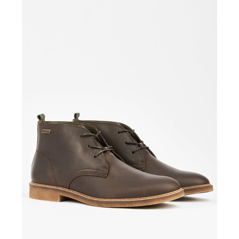Expertly crafted with 100% Bovine leather, the Barbour Sonoran Mens Desert Boot brings both style and durability to your footwear collection. The three eyelet design and faux crepe Barbour branded outsole offer a comfortable fit and long-lasting wear. Elevate your desert boot game with this timeless piece.