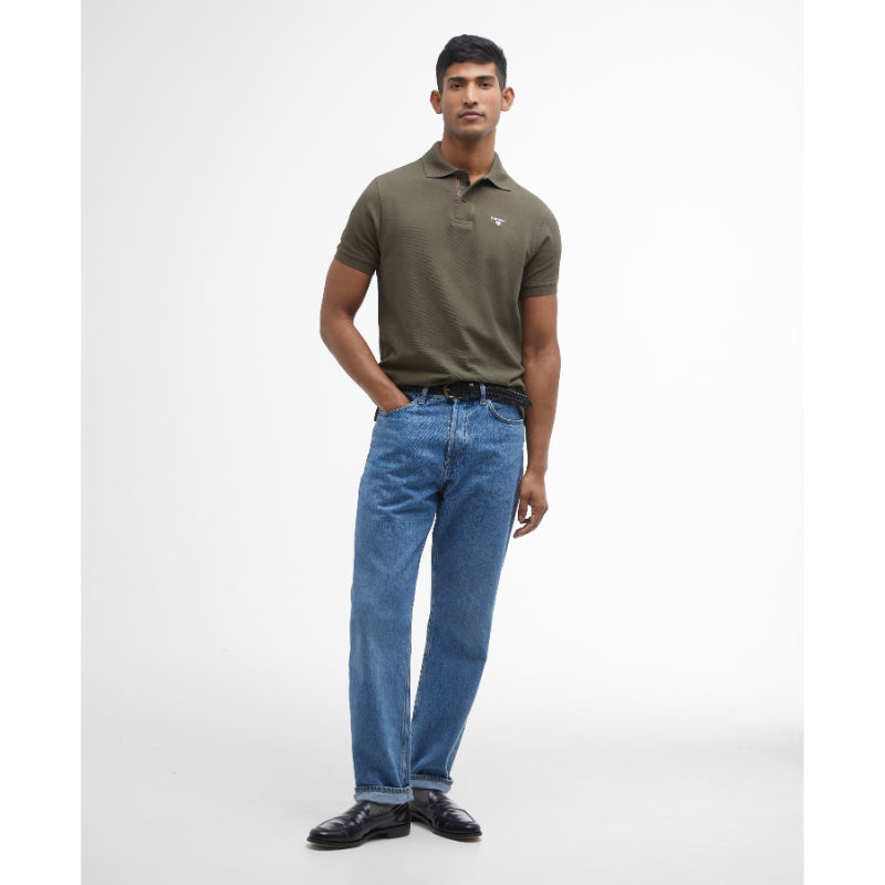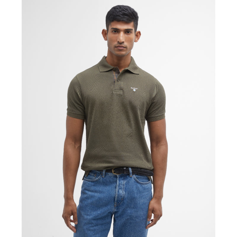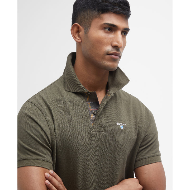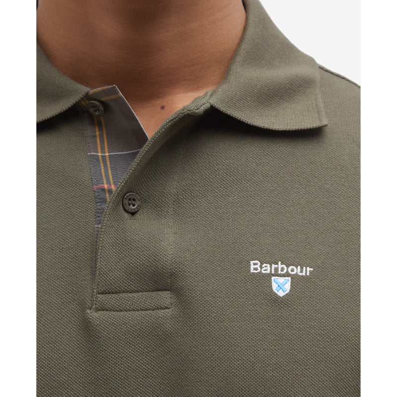 Barbour Tartan Pique Mens Polo Shirt - Dark Olive/Classic