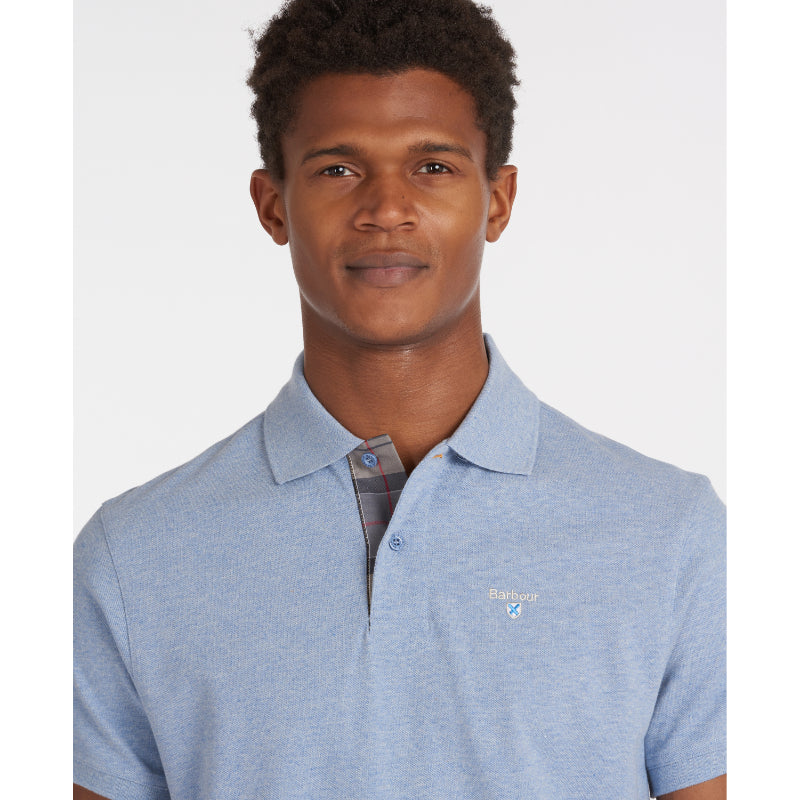 Barbour Tartan Pique Mens Polo Shirt - Sky Marl
