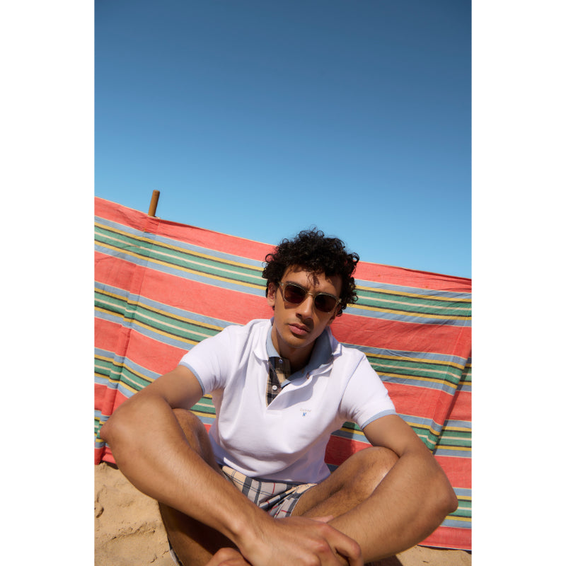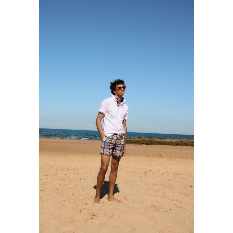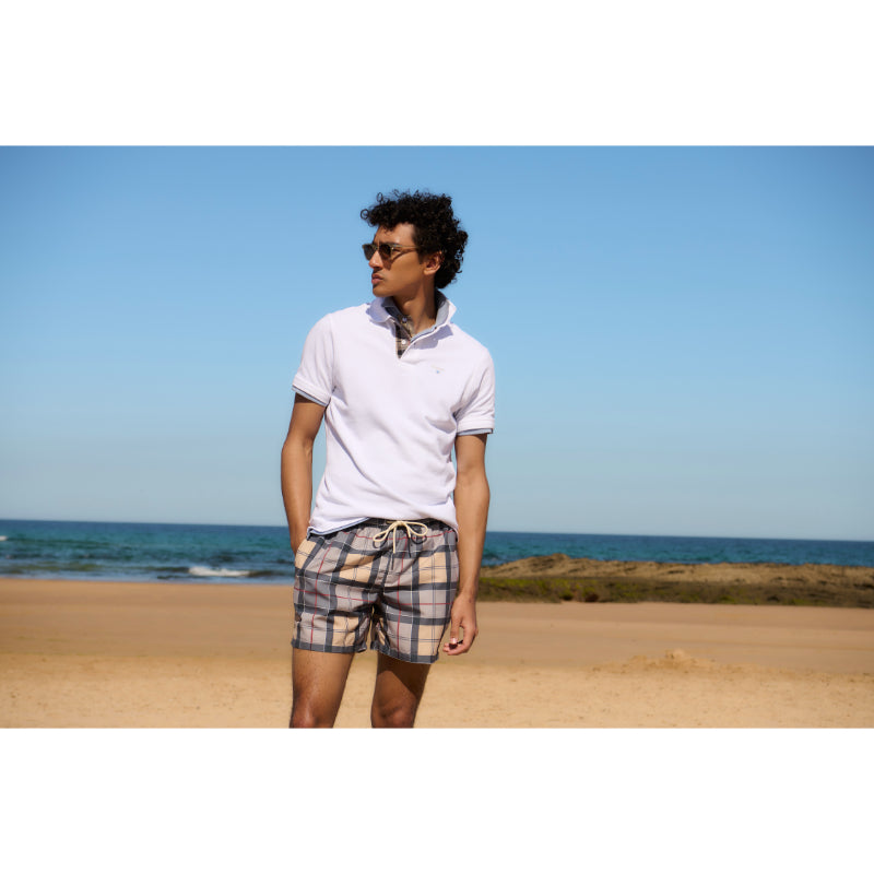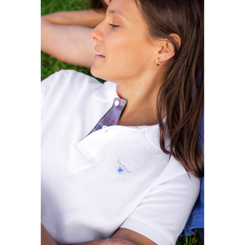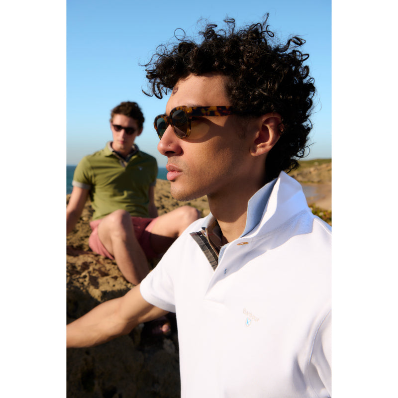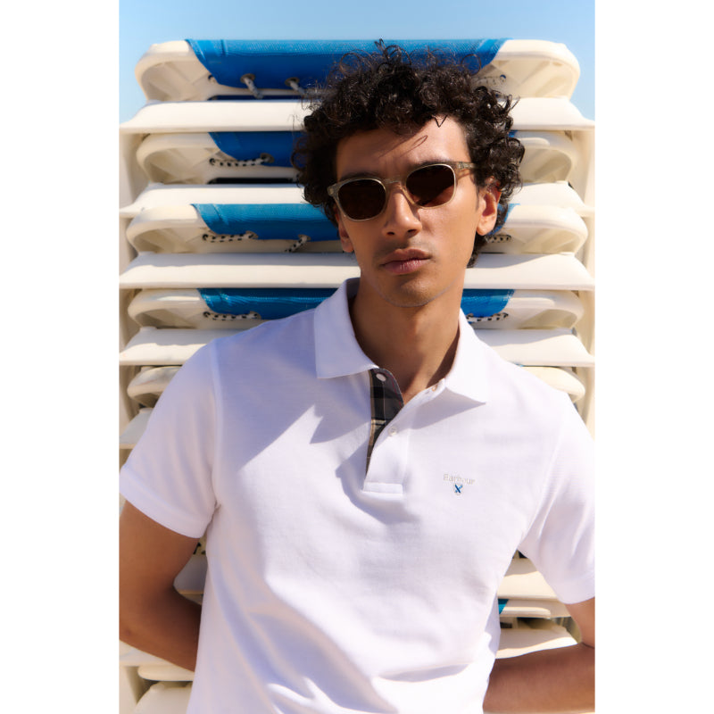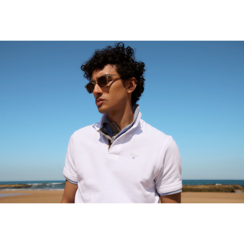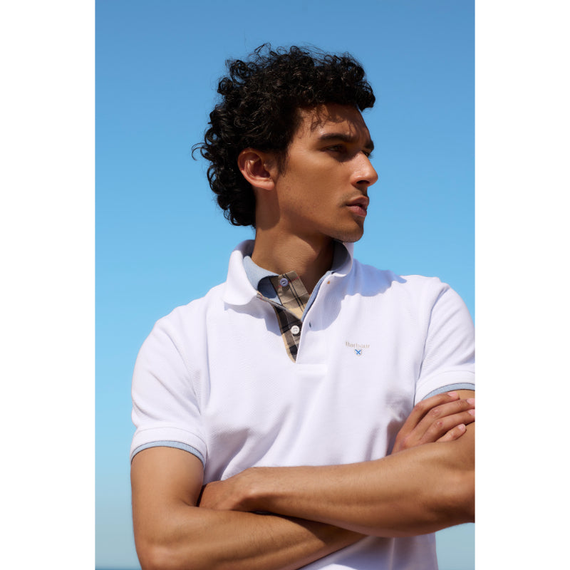 Barbour Tartan Pique Mens Polo Shirt - White/Dress
