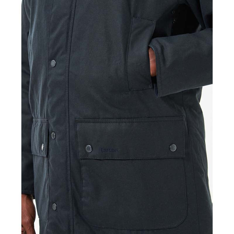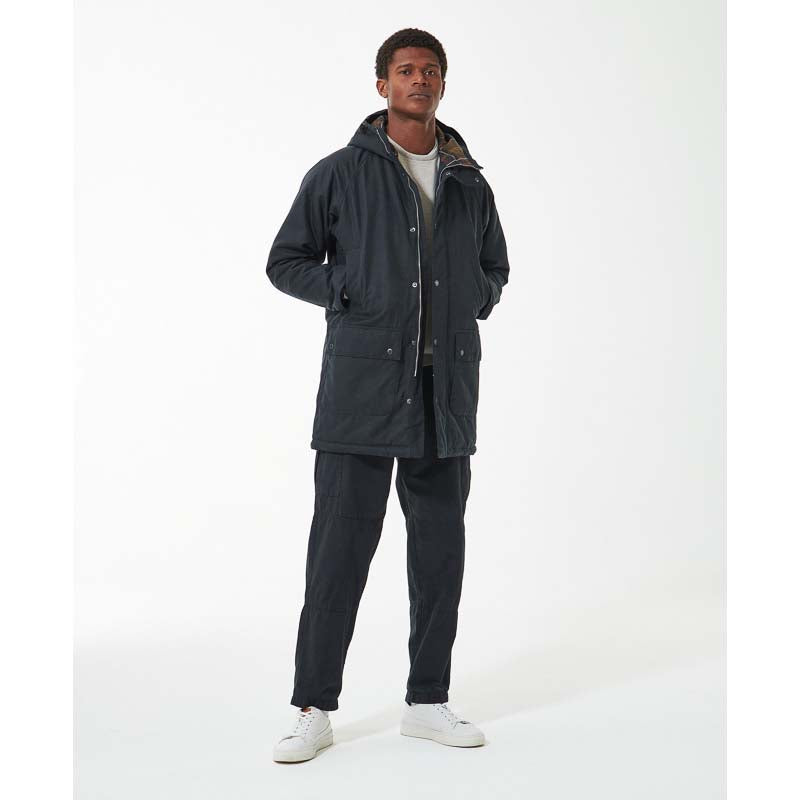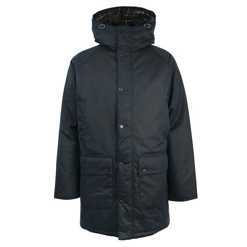 The Barbour Wax Mens Parka is the perfect combination of style and practicality. Crafted from 100% waxed cotton with a classic Barbour tartan lining, the coat features a tailored fit for a modern twist on a classic parka. A fixed hood and zip-and-stud front placket ensure protection from the elements, while two hand warmer pockets and two lower patch pockets provide ample storage. The adjustable hood and hem ensure a perfect fit.