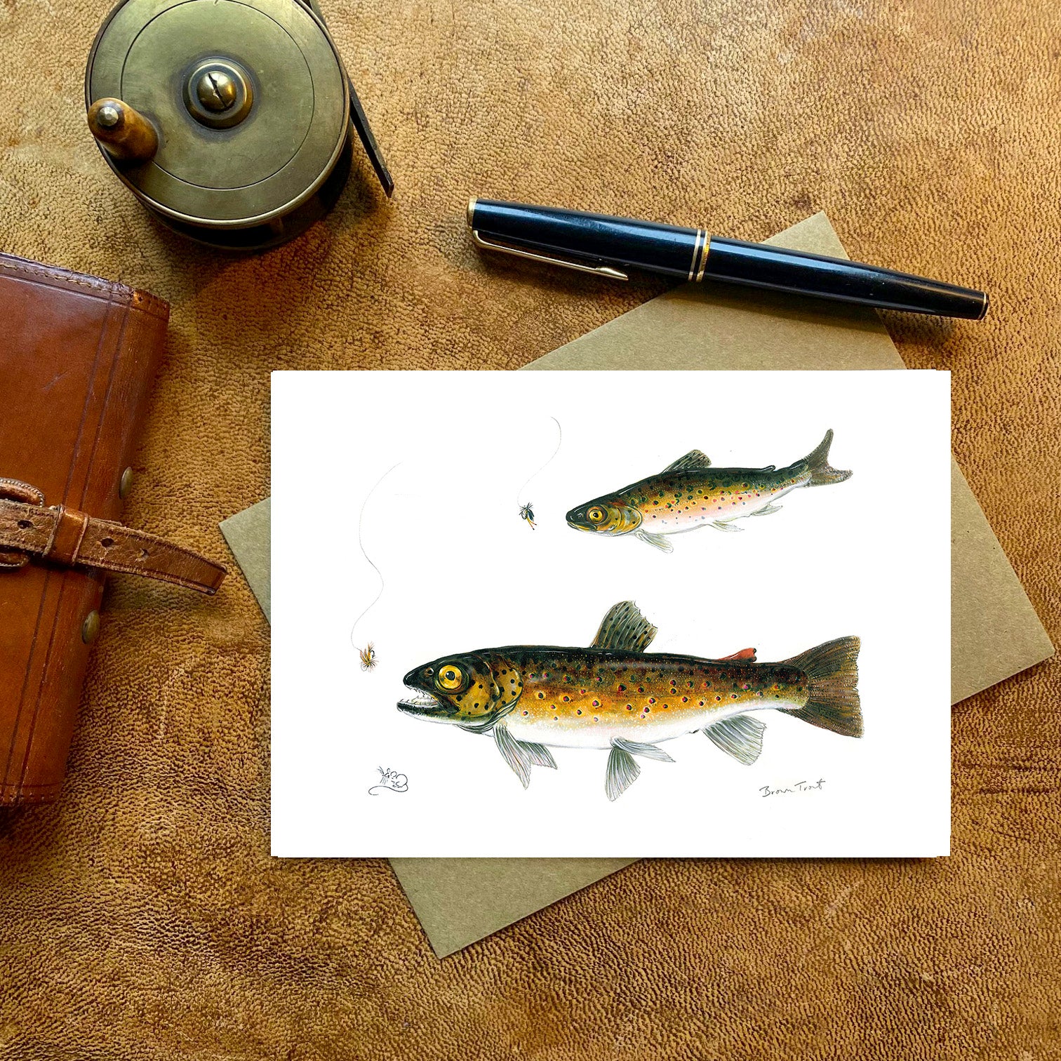 This charming Brown Trout card is designed and printed in the UK, using a high-quality 300gsm card that is responsibly sourced from managed forests. The design is by wildlife artist Mouse Macpherson, of a brown trout caught in the hill lochs above Arnisdale on the West Coast of Scotland. The perfect gift for the keen sportsman or woman and those who love the countryside.