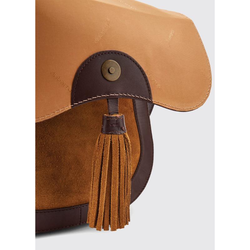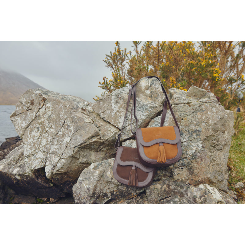 Dubarry Monart Suede/Leather Ladies Crossbody Saddle Bag - Camel