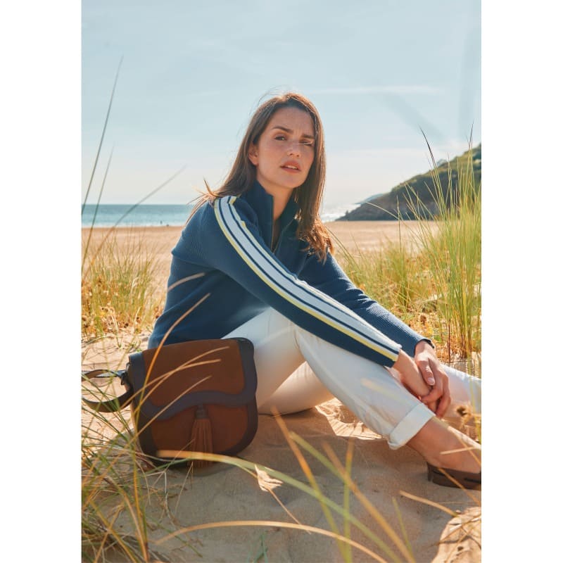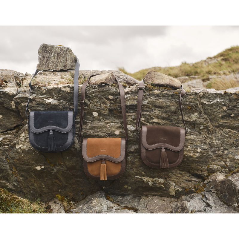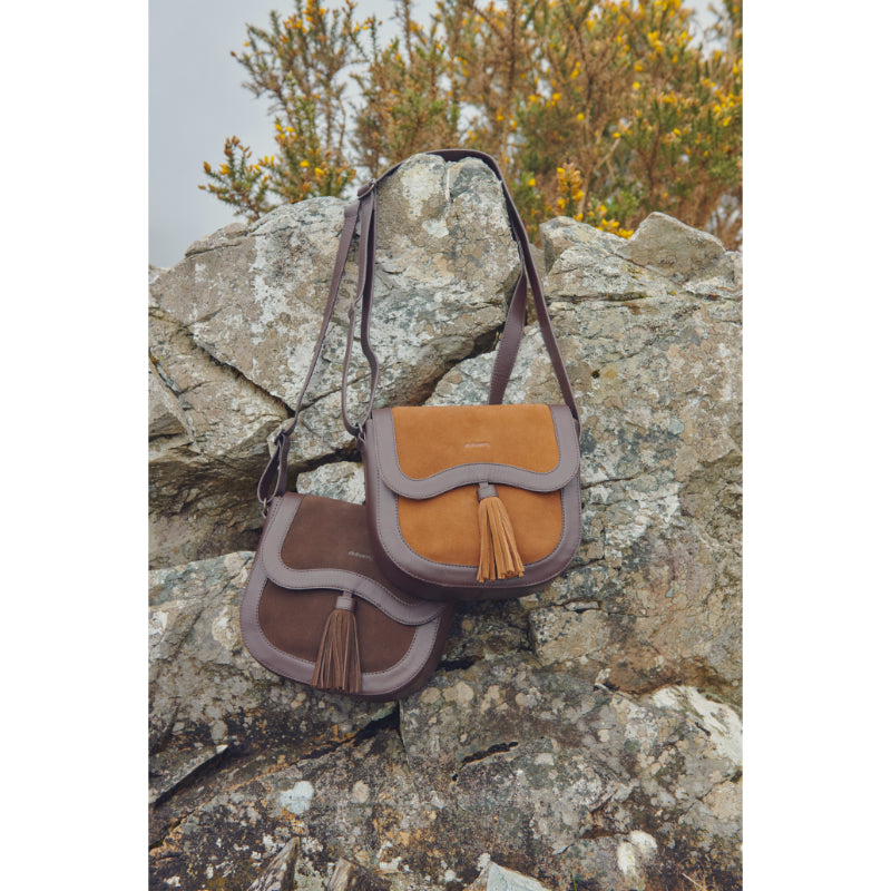 The Dubarry Monart Suede/Leather Ladies Crossbody Saddle Bag is classically designed and crafted from quality materials in a handy size to suit your everyday essentials. The combination of smooth leather and suede provides a smart and stylish overall look with interesting texture that reflects Dubarry's classic footwear range. The adjustable cross body strap allows for easy and comfortable use, whether you're running errands in town or roaming the countryside. Complete with a charming tassel detail, an internal pocket and a leather key holder strap with clip for securing your valuables.
