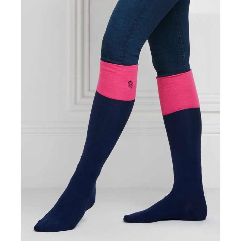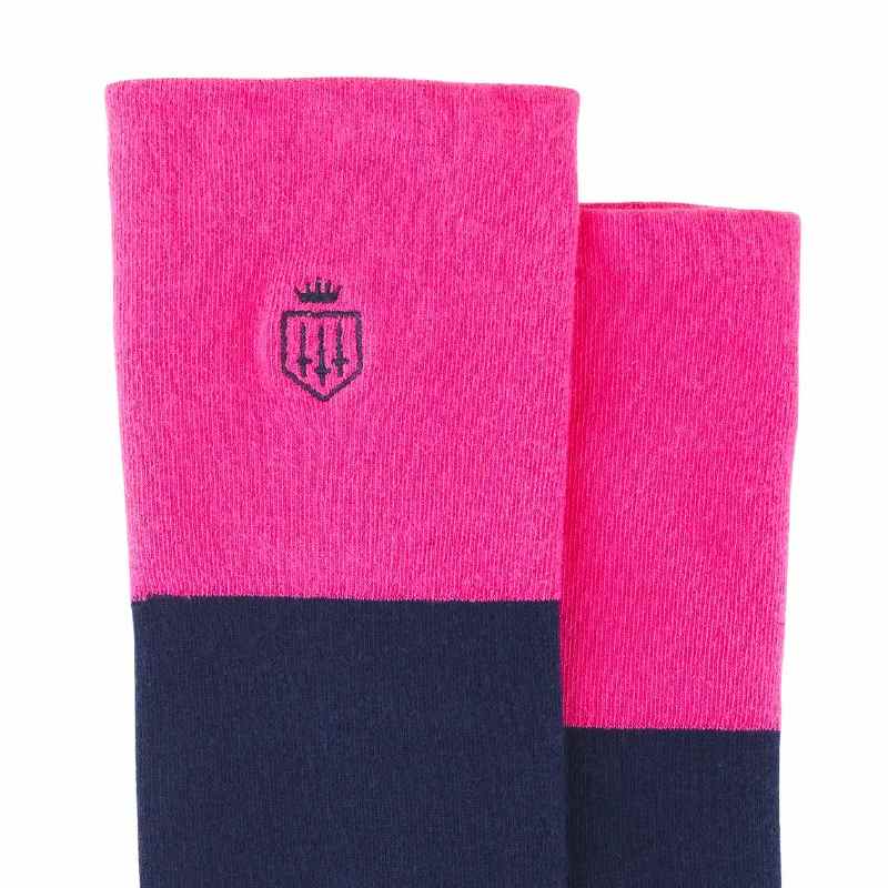 The Fairfax & Favor Ladies Boot Socks are the perfect partner for your tall boots! Soft and warm, crafted from a cotton blend with a hint of elastane for stretch and comfort. Featuring beautiful contrasting coloured tops that will show above your boots, complete with the iconic Fairfax & Favor shield logo.