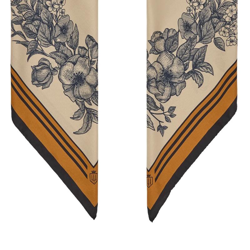 Fairfax & Favor Mannington Silk Scarf - Off White/Navy/Orange