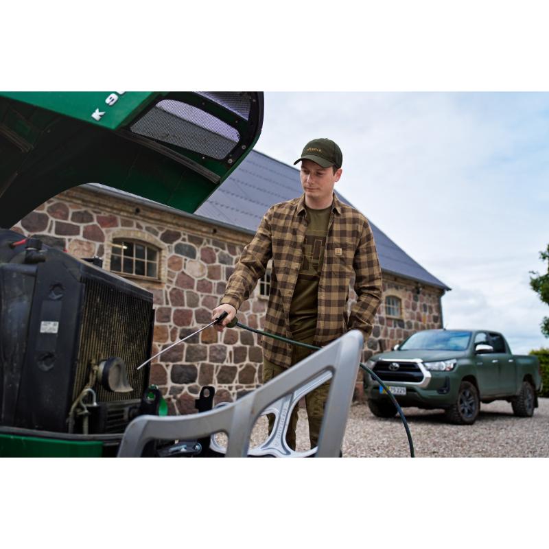 The Harkila Scandinavian Long Sleeve Shirt is a functional and versatile choice for hunting and casual activities. Its modern fit and comfortable check fabric provide both style and practicality, while features such as chest pockets, 2-position button closure cuffs, and garment washed look adds extra convenience.