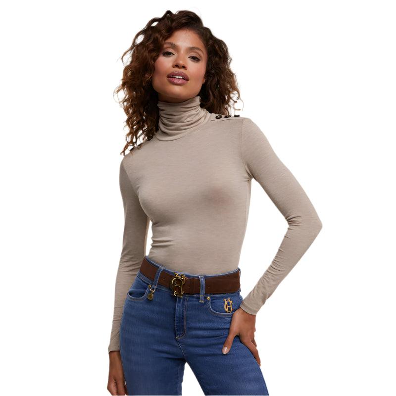 The Holland Cooper Long Sleeve Ladies Roll Neck Top is one of those staple items that all ladies should have in their wardrobe. The perfect base for creating lovely layered outfits, or equally a comfy casual top for lounging around the house. Crafted from a soft, lightweight fabric with a touch of elastane for stretch, designed in a flattering fitted shape that is long enough to tuck into your favourite pair of jeans or tweed skirt. Simple yet still incredibly chic, this top is complete with the classic HC branded hardware on the shoulders.