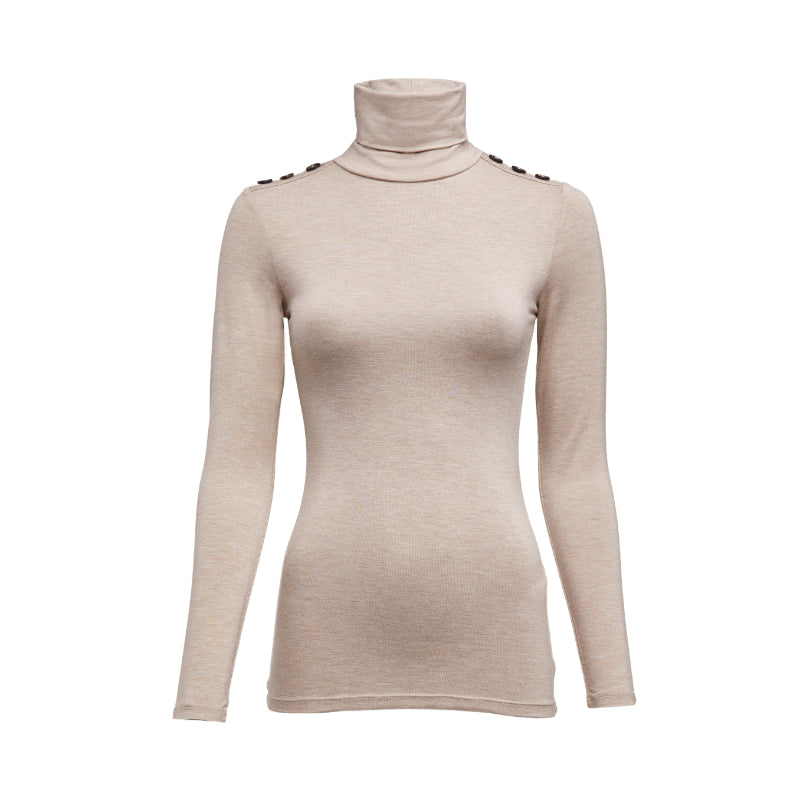 Holland Cooper Long Sleeve Ladies Essential Roll Neck Top - Oatmeal