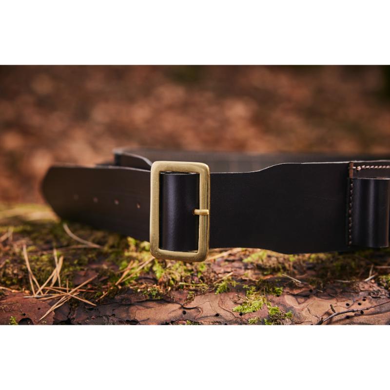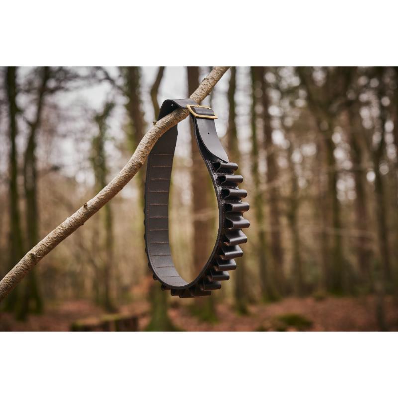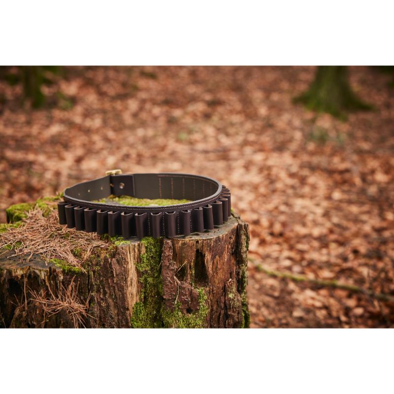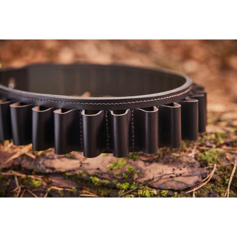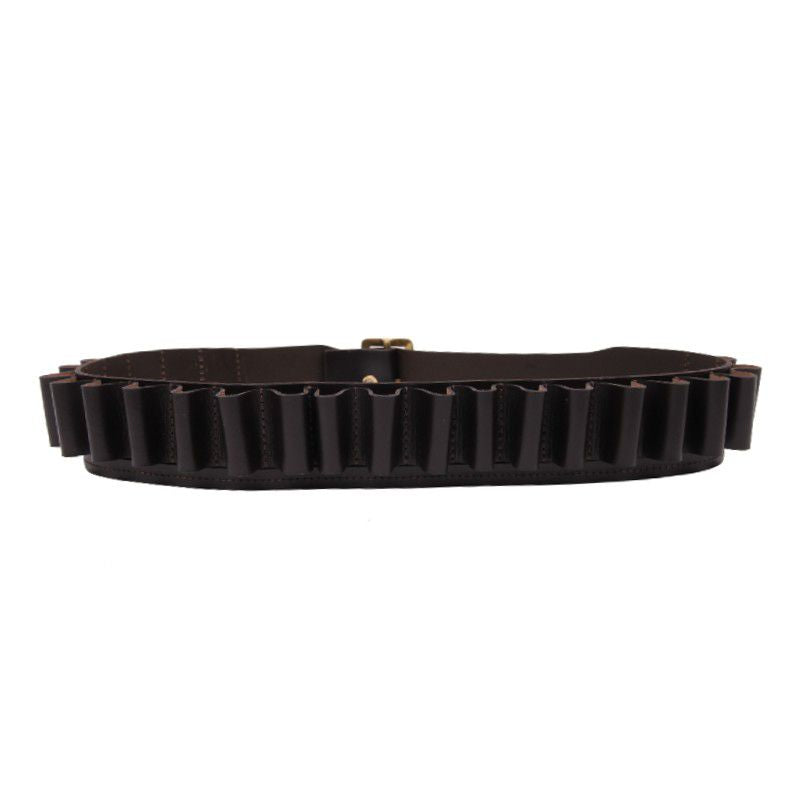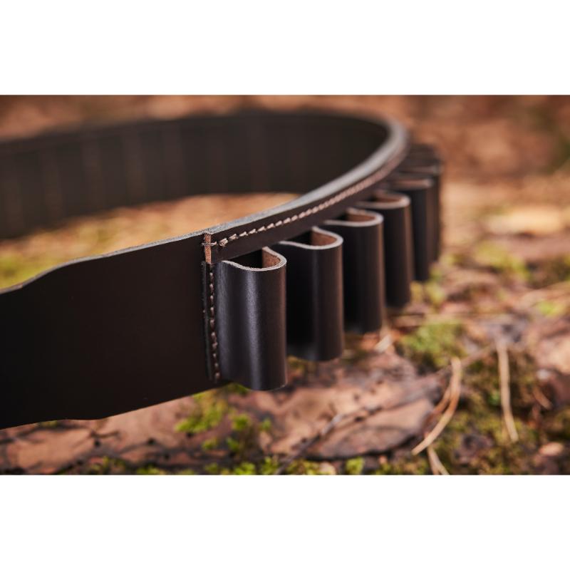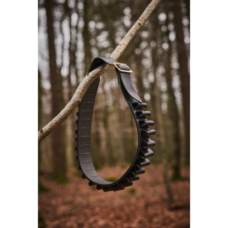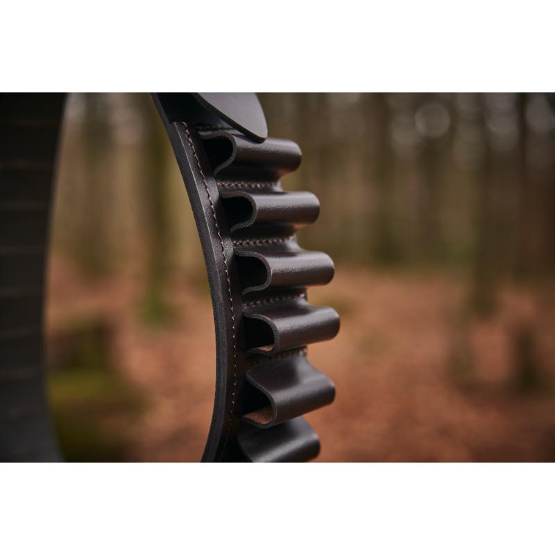 This Leather Cartridge Belt in Dark Brown is the perfect accessory for a day of shooting. Crafted with premium pull up leather, this belt exudes elegance and offers unrivaled quality. Featuring 25 leather loops for 12 gauge cartridges and a brass buckle, it's both functional and stylish. Elevate your shooting experience with this classic and durable belt.
