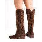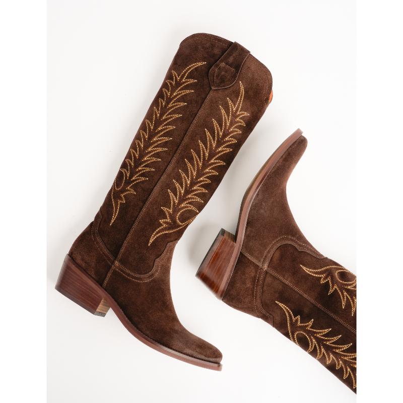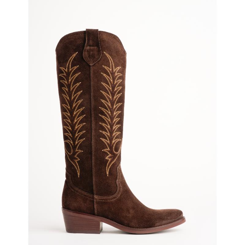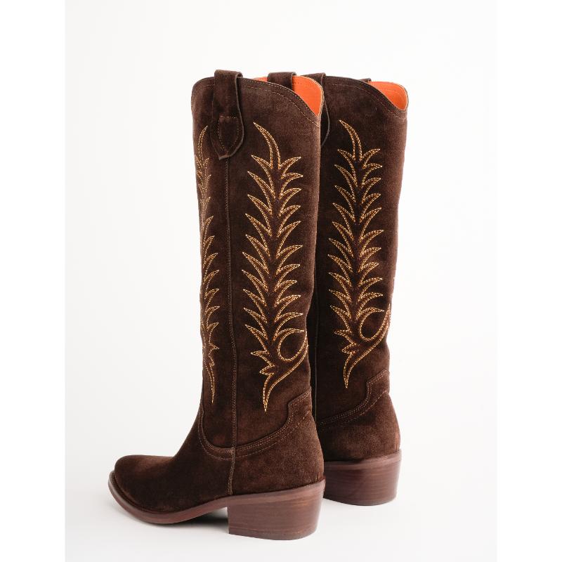 Penelope Chilvers Blanca Embroidered Suede Ladies Cowboy Boot - Bitter Chocolate