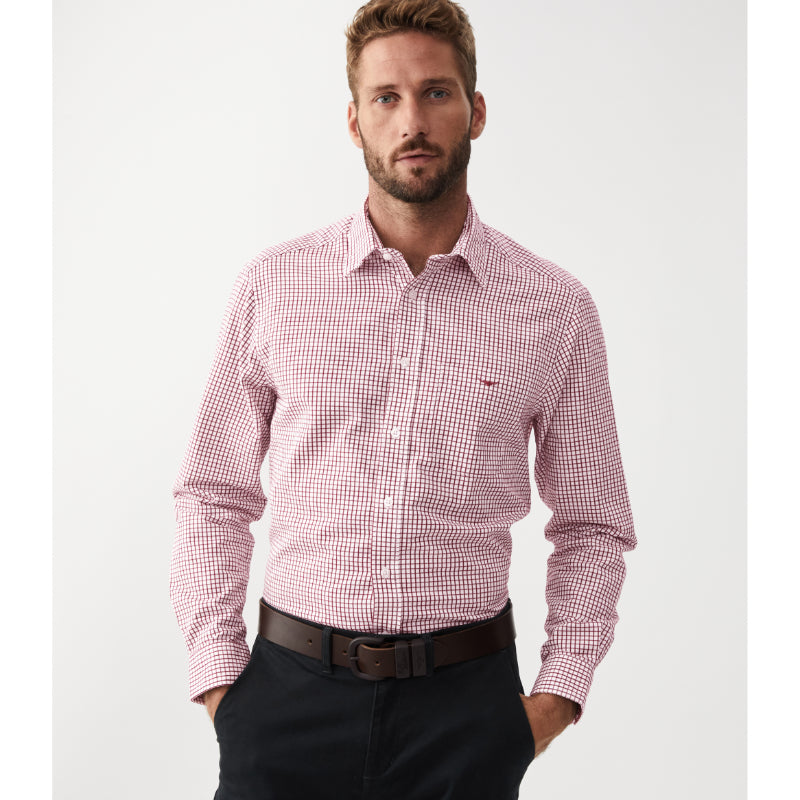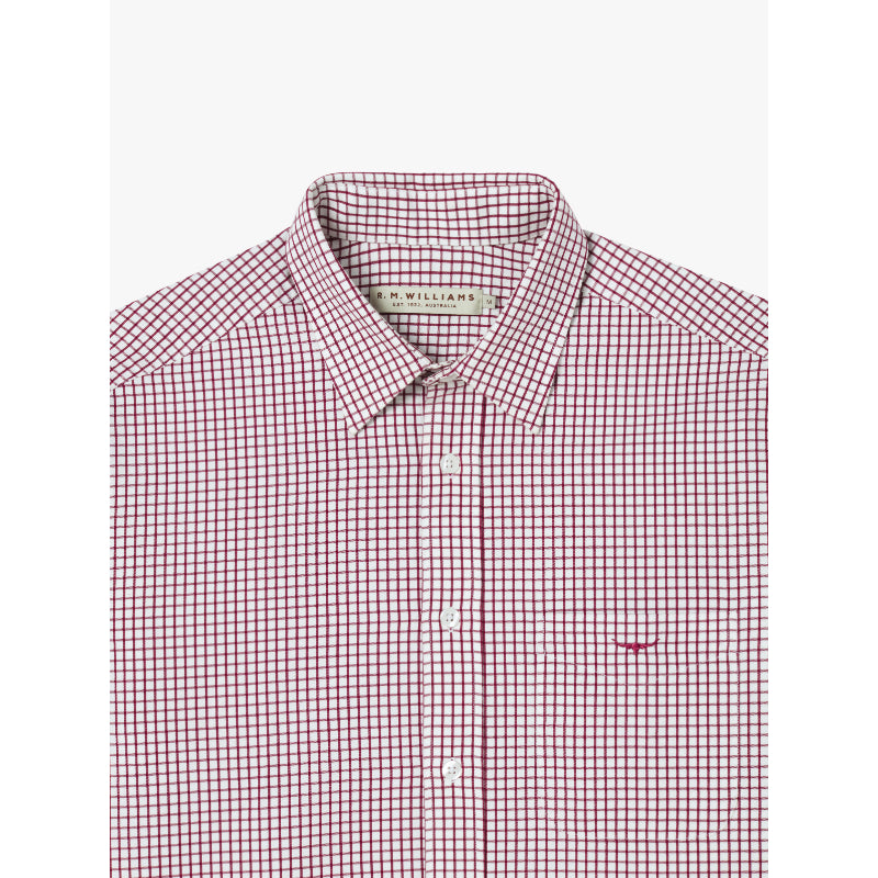 R.M.Williams Mens Collins Regular Fit Check Shirt - Burgundy/White