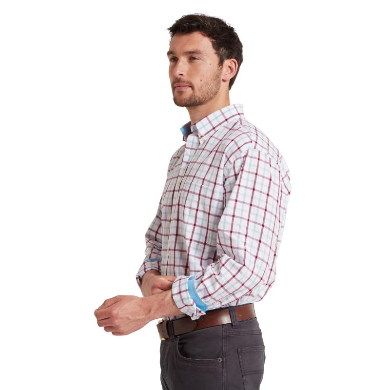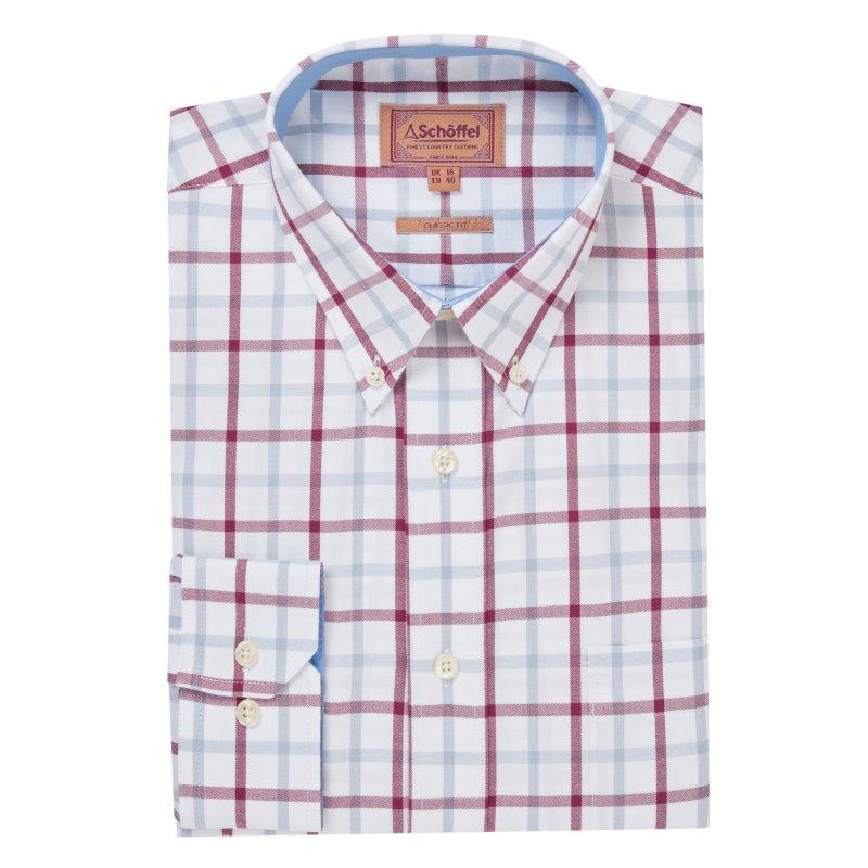 The Schoffel Brancaster Classic Mens Shirt is effortlessly smart with button-down collar in 100% cotton, featuring two cuff button positions with the option for cufflinks and attractive tonal collar and cuff linings that complements the check print. Machine washable.