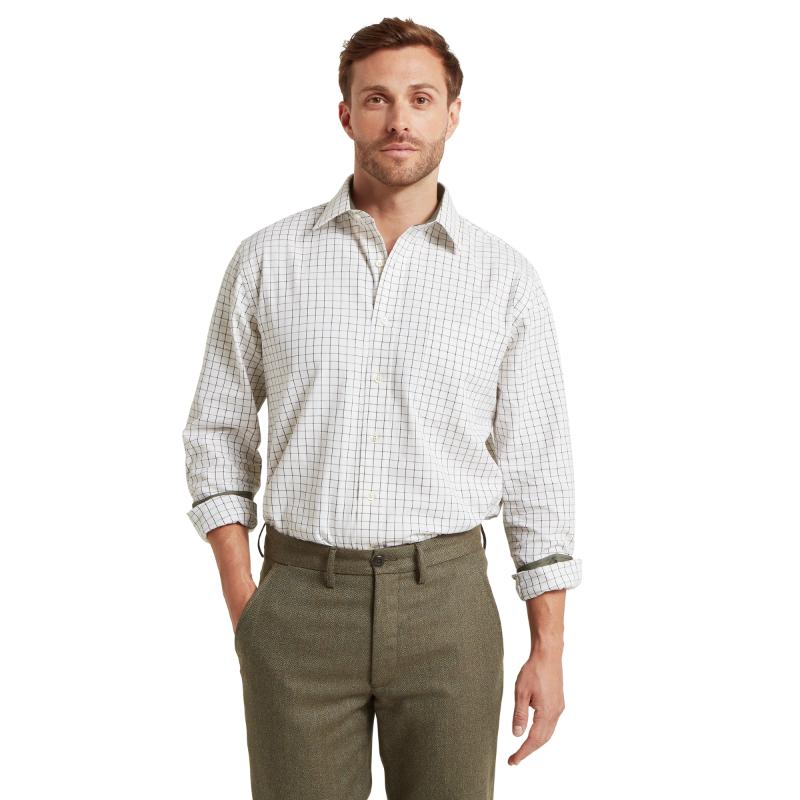 Schoffel Burnham Tattersall Classic Mens Shirt - Dark Olive Tattersall