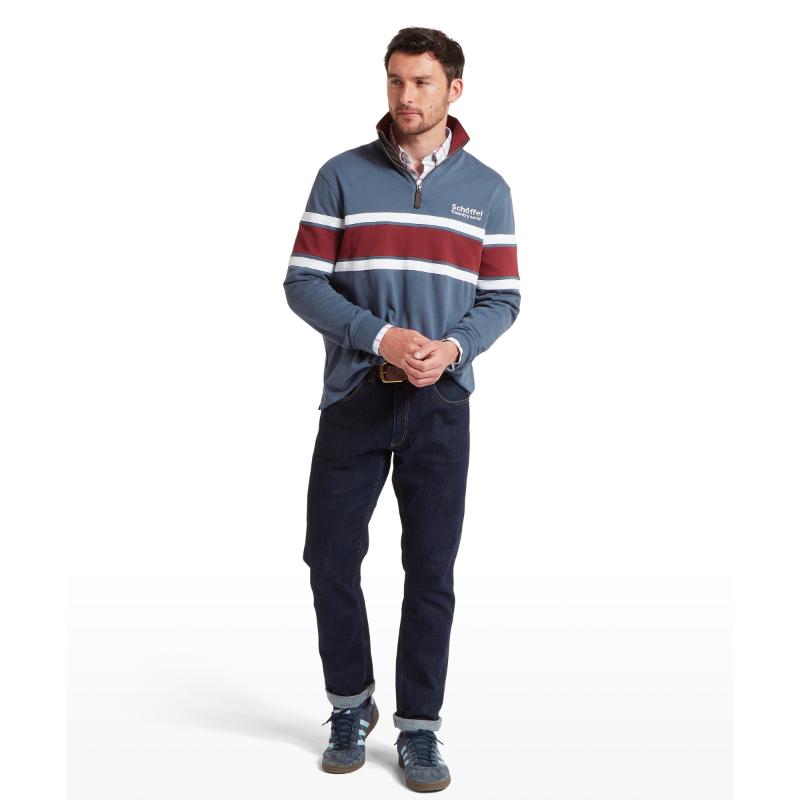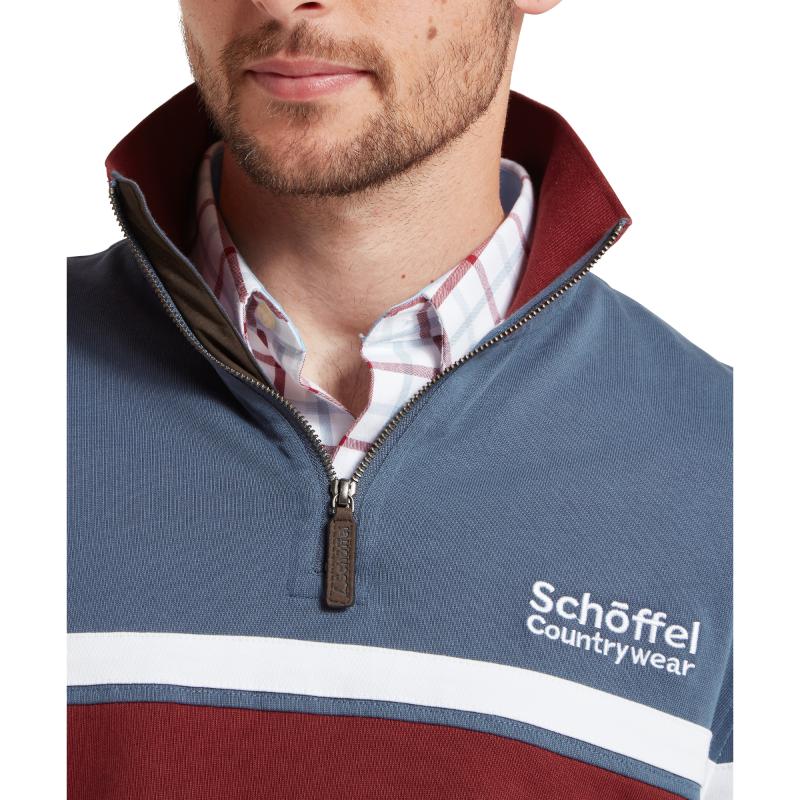 This Schoffel Exmouth Heritage 1/4 Zip Jumper is a stylish yet practical choice. Crafted from a heavyweight peached jersey fabric which is 100% cotton, it provides comfort and durability. The regular fit and rugby-style neckline give you a classic look, perfect for everyday wear. This jumper is designed with a 1/4 length YKK zipper and branded zipper pull to create a stylish look. Finished with a Schoffel embroidered logo, this is a great choice for your wardrobe.