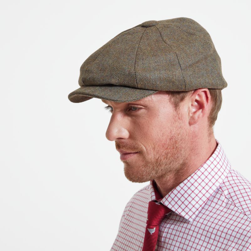 Schoffel Newsboy Mens Cap - Loden Green Herringbone Wide Tweed
