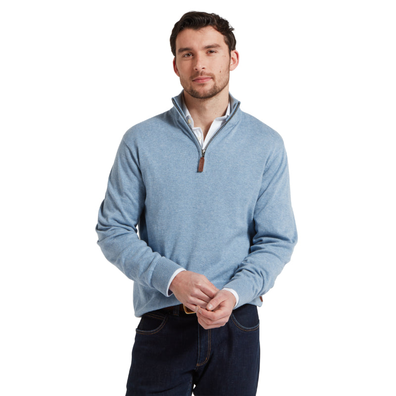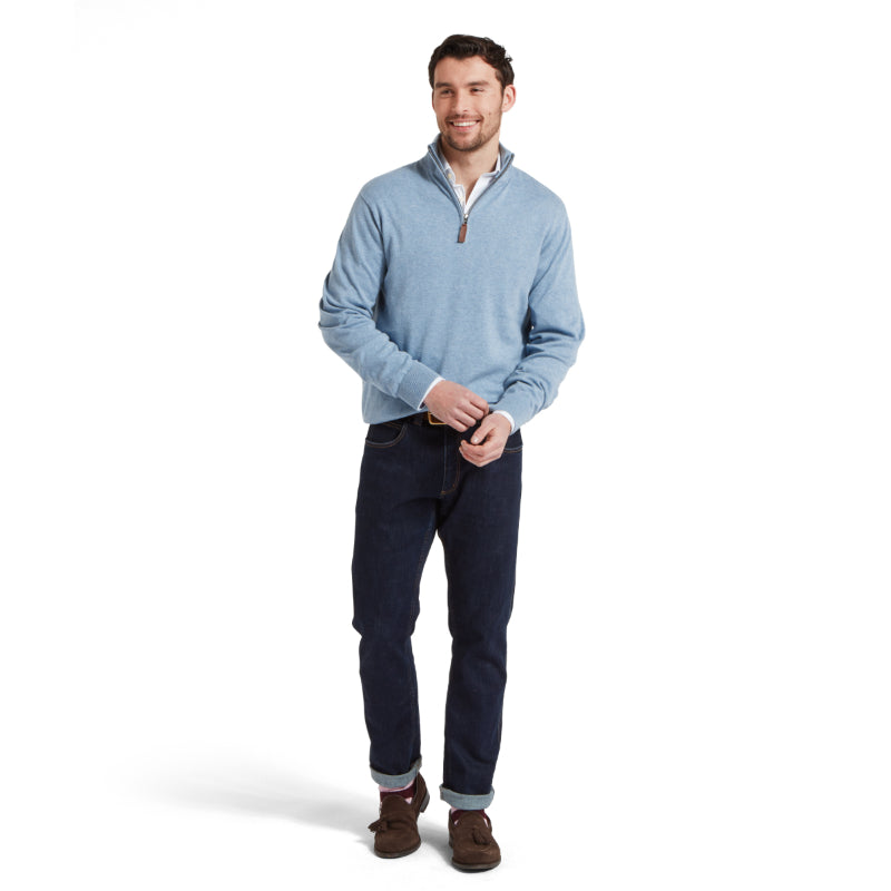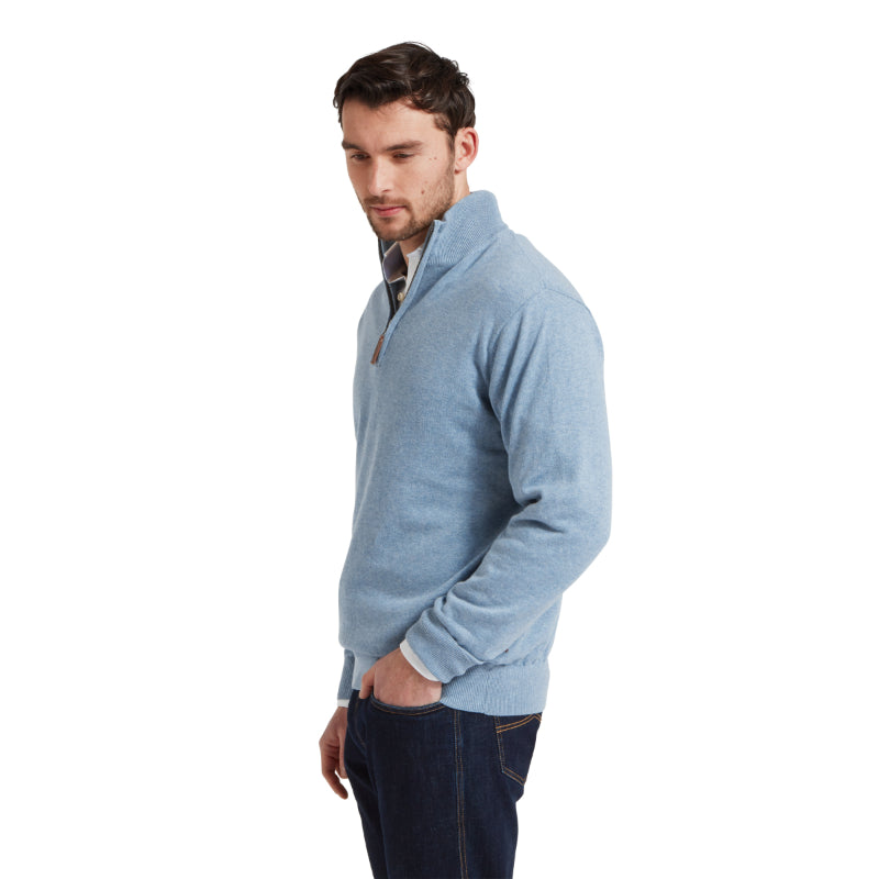 Schoffel Porthmeor Pima Cotton 1/4 Zip Mens Jumper - Denim Blue