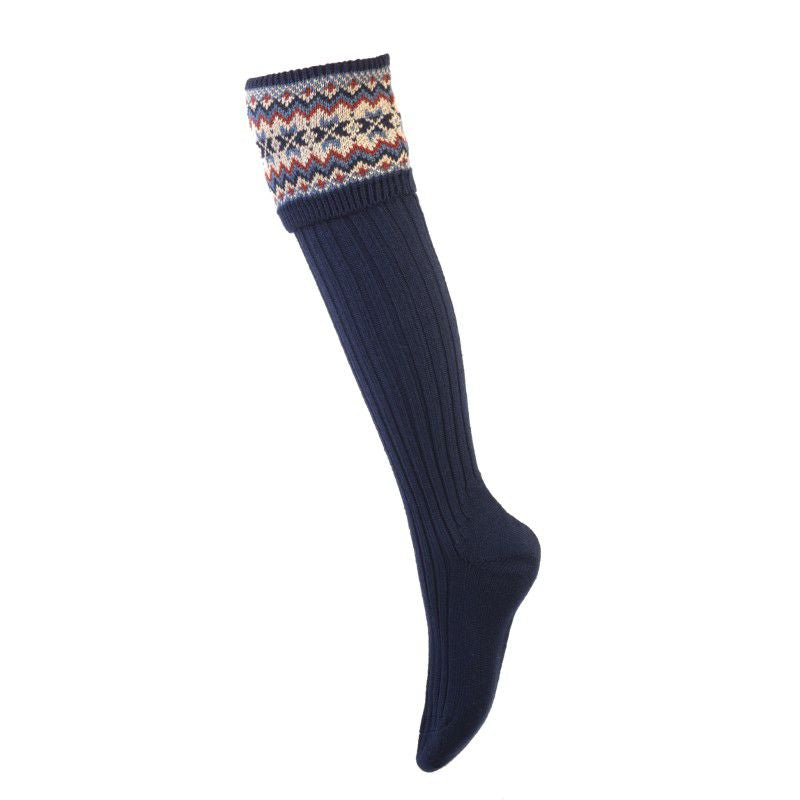 William Powell Fairisle Ladies Merino Mix Shooting Socks - Navy