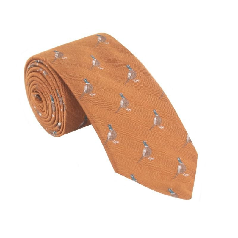 William Powell Luxury Woven Wool & Silk Pheasant Tie - Rust