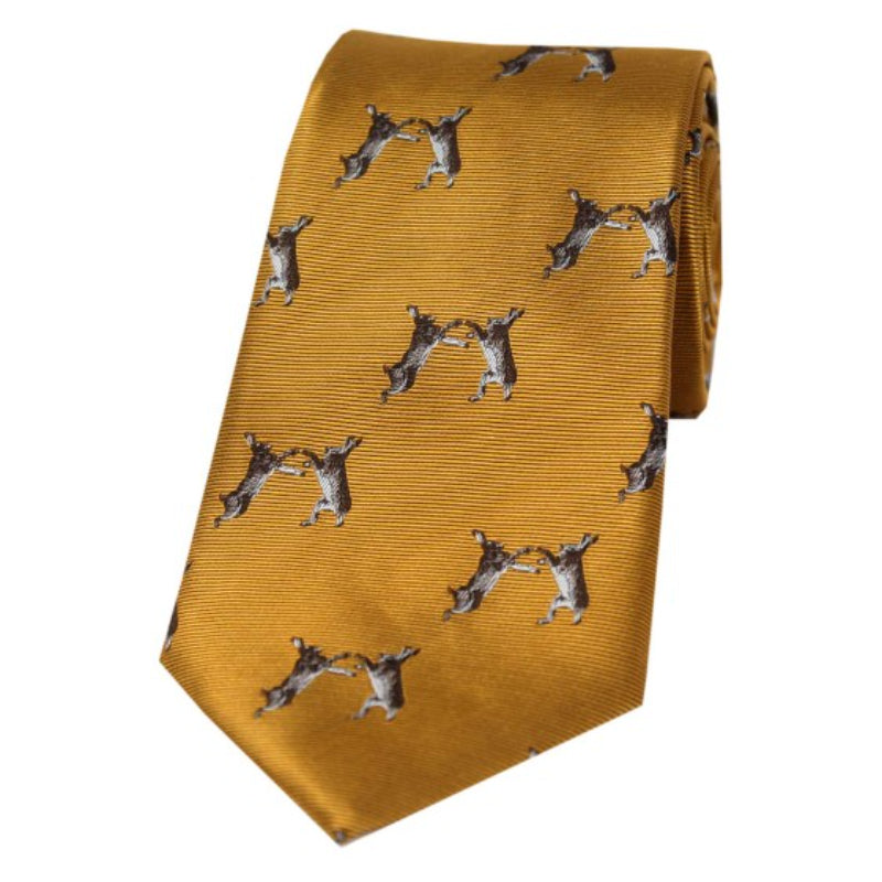 William Powell Woven Silk Boxing Hares Tie - Gold