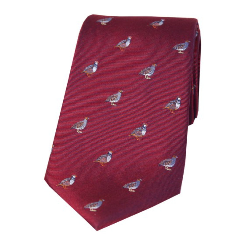 William Powell Woven Silk Grouse and Partridge Tie - Maroon