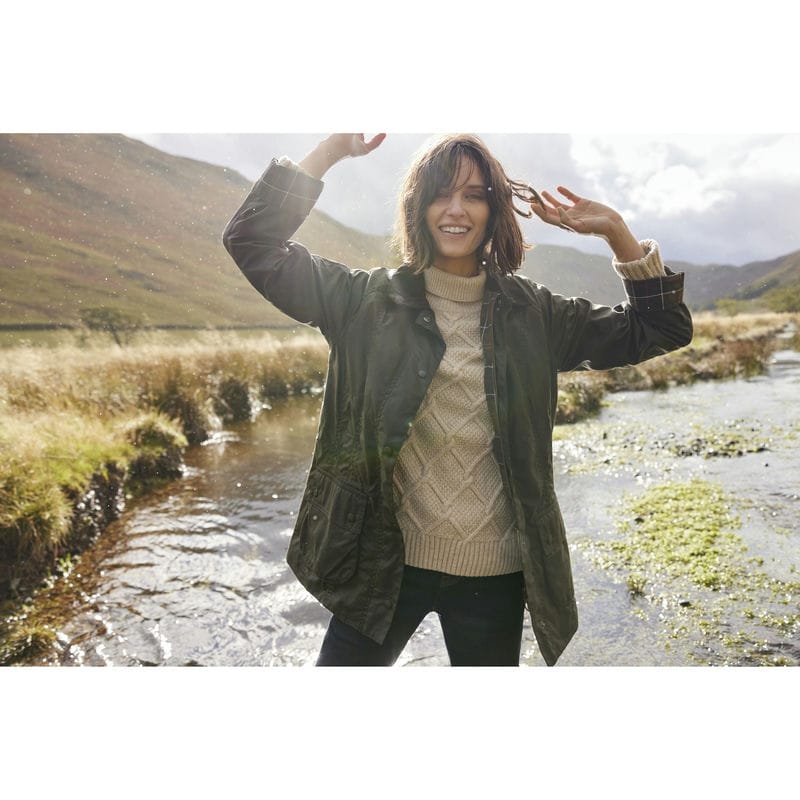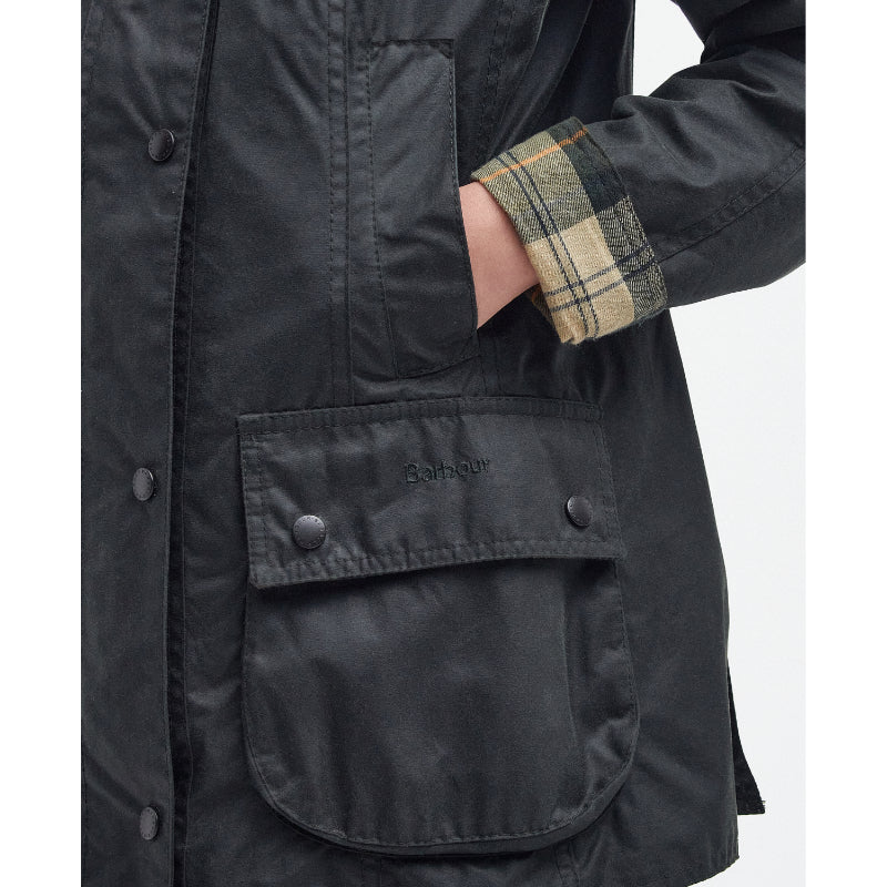 The Barbour Beadnell Ladies Wax Jacket is ideal for everyday wear, crafted in 6oz waxed cotton and lined in classic tartan. The Beadnell is timeless, designed around a relaxed, feminine fit with hand warmer pockets, lower patch pockets and finished with a nod to Barbour's heritage by way of a traditional corduroy collar.