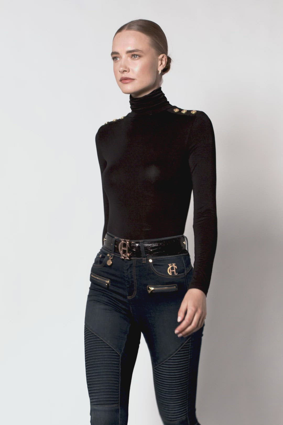 The Holland Cooper Long Sleeve Ladies Roll Neck Top is one of those staple items that all ladies should have in their wardrobe. The perfect base for creating lovely layered outfits, or equally a comfy casual top for lounging around the house. Crafted from a soft, lightweight fabric with a touch of elastane for stretch, designed in a flattering fitted shape that is long enough to tuck into your favourite pair of jeans or tweed skirt. Simple yet still incredibly chic, this top is complete with the classic HC branded hardware on the shoulders.